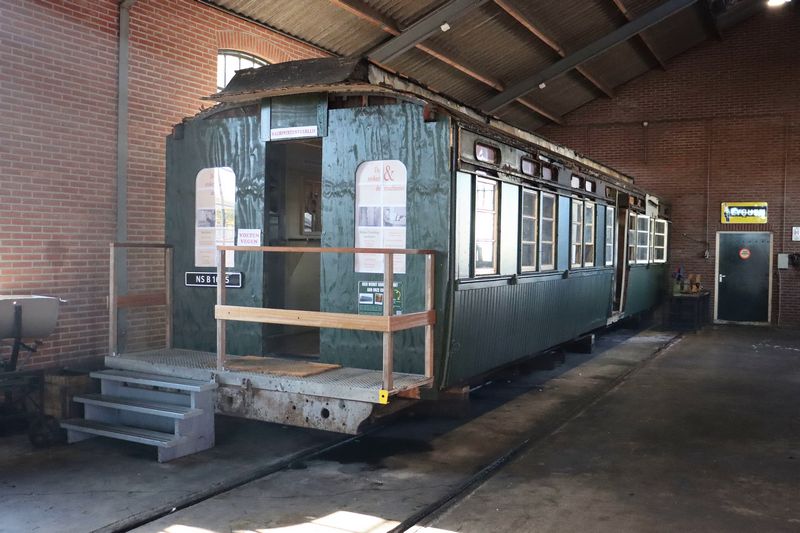 Achterin de werkplaats in Haaksbergen staat rijtuig NCS B101 / NS B1605. Najaarsstoomdagen 2025, 18 oktober 2025. © TreinenInNederland.nl |