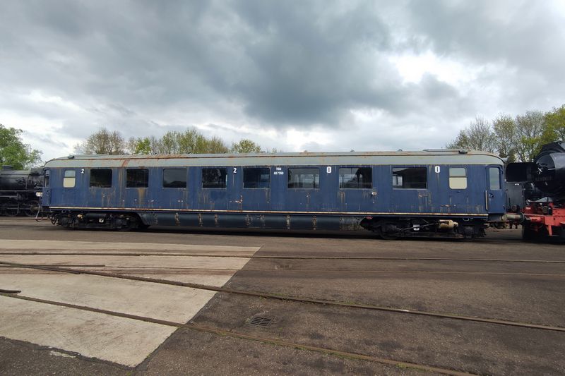 Plan-K rijtuig AB 7359 staat op het VSM-terrein in Beekbergen opgesteld. 9 mei 2024. © TreinenInNederland.nl |