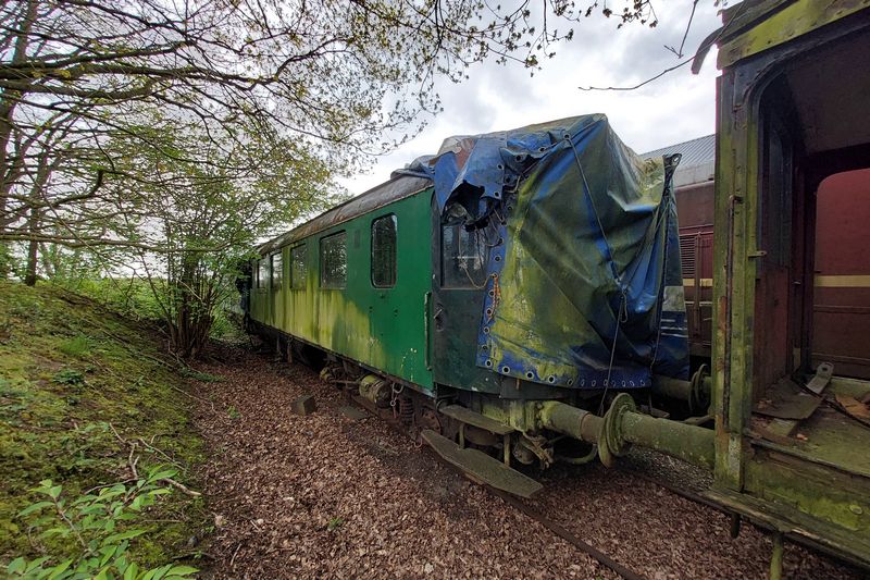 Plan-K rijtuig AB7378 staat op de opstelsporen naast de loods in Beekbergen opgesteld. 9 mei 2024. © TreinenInNederland.nl |