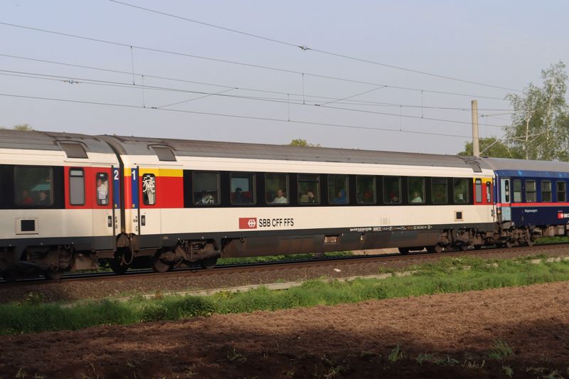 Op maandag 27 september 2021 vond er een testrit plaats van de Nightjet die gaat rijden tussen Amsterdam en Zürich. De foto toont SBB Apm-rijtuig met UIC-nummer 61 85 10-90 251-2 wat mee reed in de trein. © TreinenInNederland.nl |
