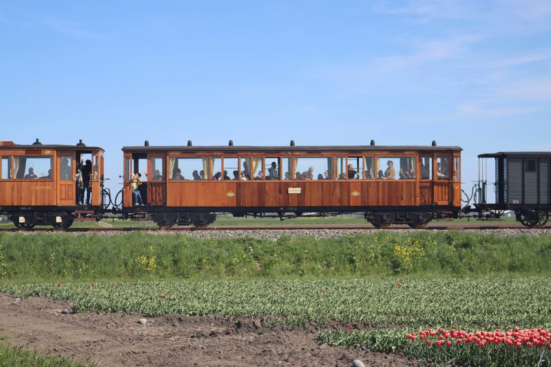De SHM 30 rijdt met acht rijtuigen tussen Wognum-Nibbixwoud en Twisk ter hoogte van de Broerdijk als tulpentram. Op de foto is de RTM AB370 te zien. 19 april 2025. © TreinenInNederland.nl |