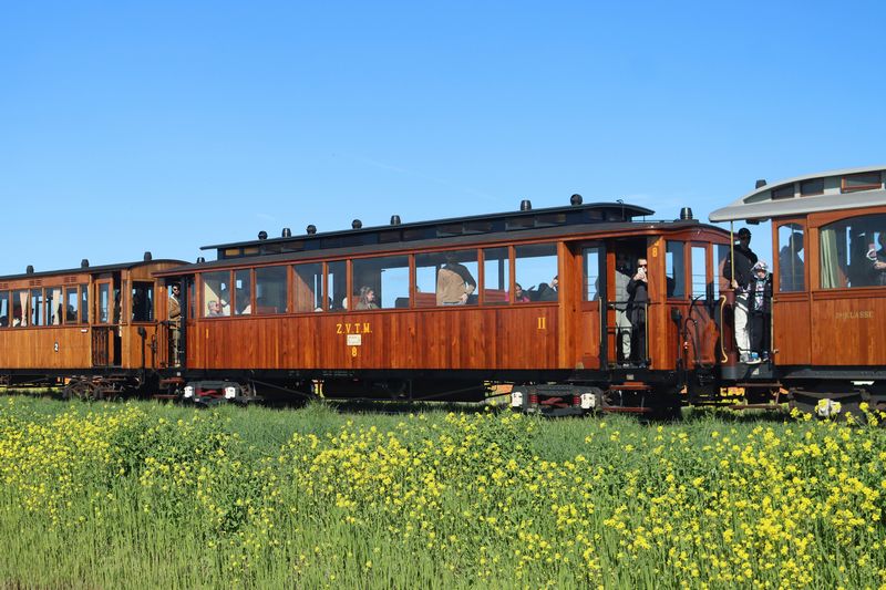 De SHM 30 rijdt met acht rijtuigen tussen Wognum-Nibbixwoud en Twisk ter hoogte van de Broerdijk als tulpentram. |