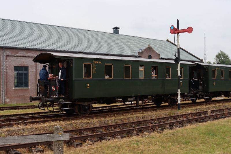 De 52 8060 rijdt met een reizigerstrein Stadskanaal binnen. Op de foto is rijtuig 91 626 van de STAR te zien. Nationale Stoomtreindag 2025 bij de Museumspoorlijn STAR, 29 mei 2025. © TreinenInNederland.nl |