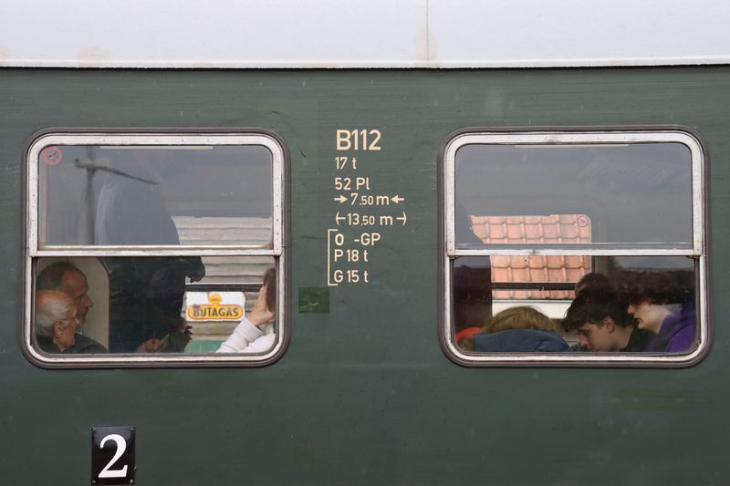 De B112 staat in een reizigerstrein te Stadskanaal langs het perron. Nationale Stoomtreindag