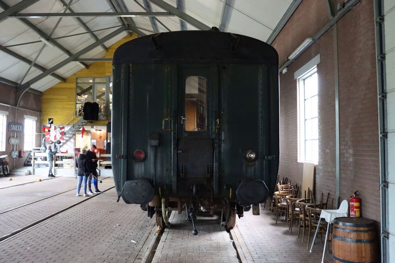 De Belgische rijtuigen B 143 en BD 144 (beide uit 1934) staan in de loods opgesteld. Nationale Stoomtreindag