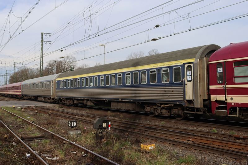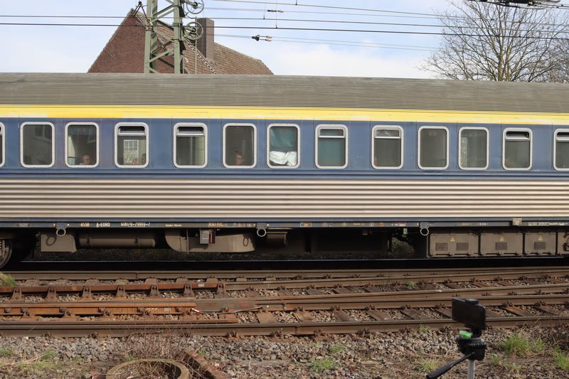 Een WLABm-rijtuig met het UIC-nummer 61 81 70-70 010-7 en een WLABee-rijtuig met het UIC-nummer 61 81 70-70 003-2 te Emmerich. 10 maart 2024. © TreinenInNederland.nl |