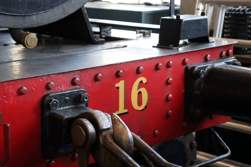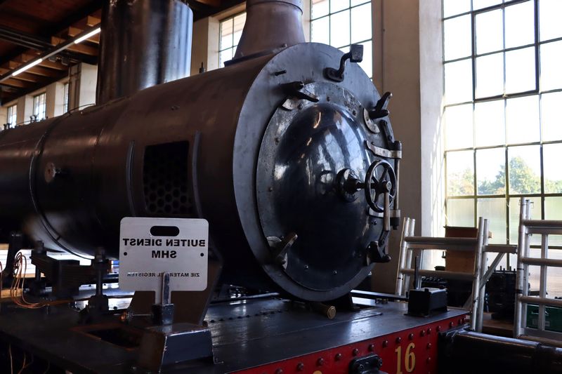 Stoomlocomotief 16 staat in de werkplaats van de SHM. Bello festival 2024 (inclusief locomotievenparade), 5 juli 2024. © TreinenInNederland.nl |