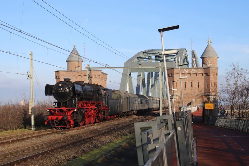 De VSM 23 076 met de Westfalendampf tussen Arnhem en Amsterdam . |