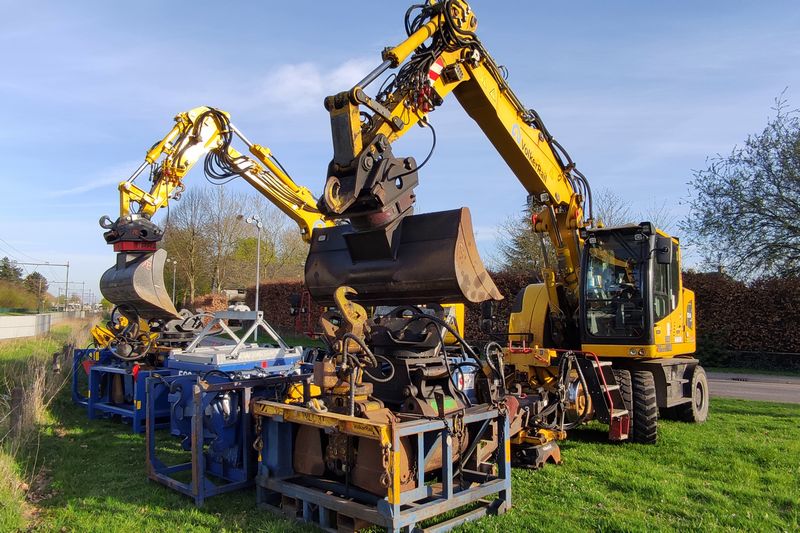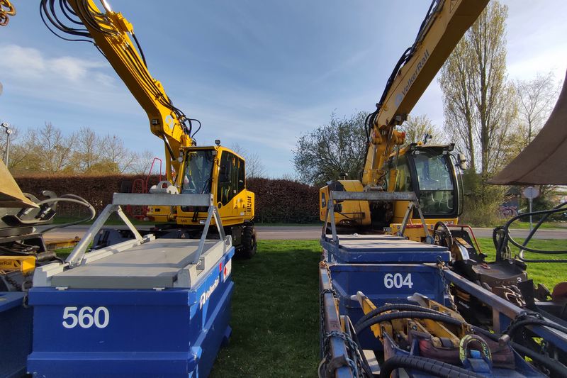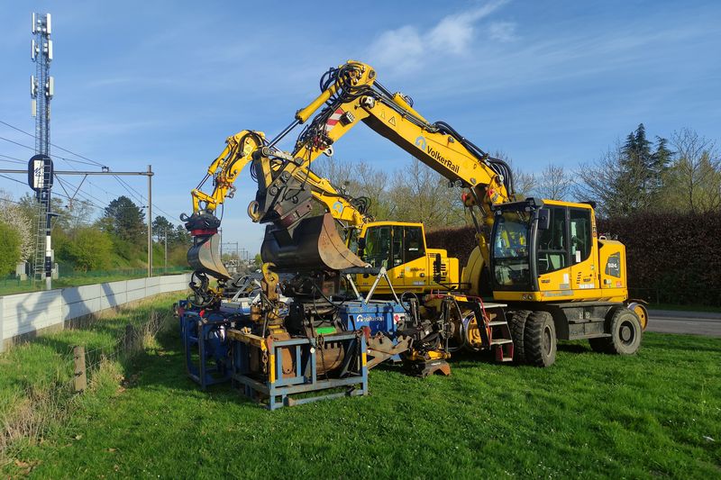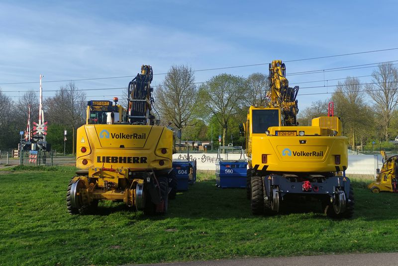 De VolkerRail Krollen met de kentekens TST-59-T en T-26-GPS staan in Duiven geparkeerd. 9 april 2025. © TreinenInNederland.nl |