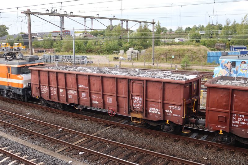 in opzending en een sleep Eanos'en beladen met schroot in Amersfoort aangekomen vanuit Bad Bentheim. 11 september 2025.