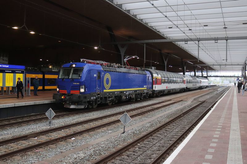 ROTTERDAM - Op vrijdag 3 oktober 2025 kwam de donkerblauwe Beacon Rail Vectron met het nummer 6193 050 met drie panoramarijtuigen, twee van de SBB en ... Lees en kijk verder. |