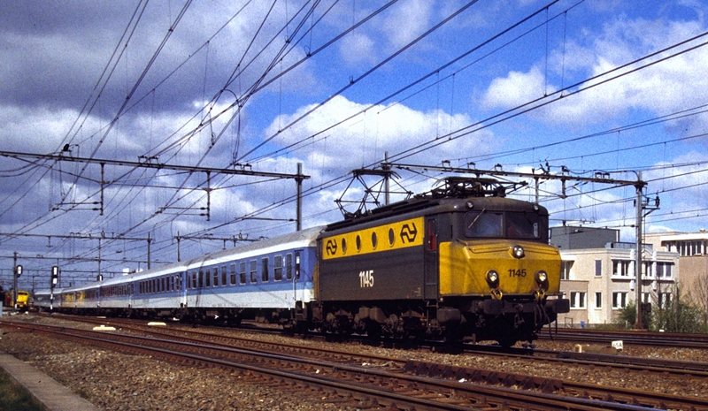 De 1145 rijdt met een interregio Amsterdam - Berlijn door Weesp. Foto voor 1997 gemaakt. © René Rathmann |
