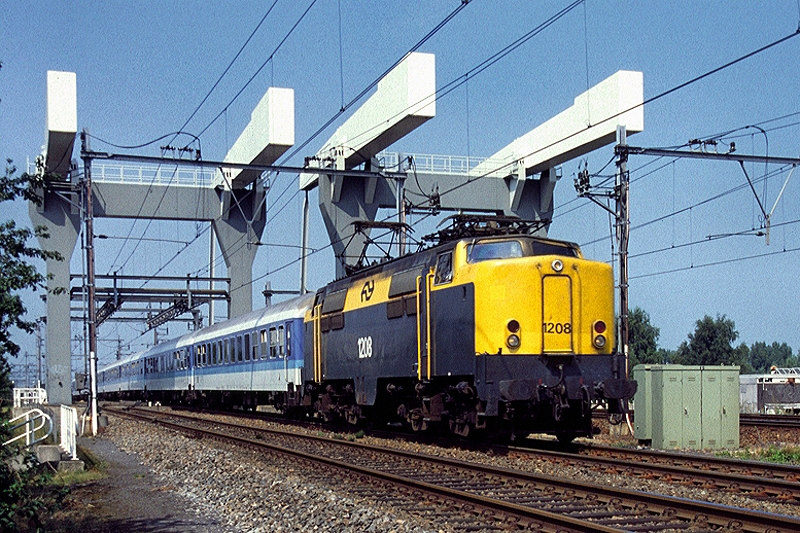 De 1208 rijdt met een interregio Amsterdam - Berlijn door Weesp. Foto voor 1997 gemaakt. © René Rathmann |