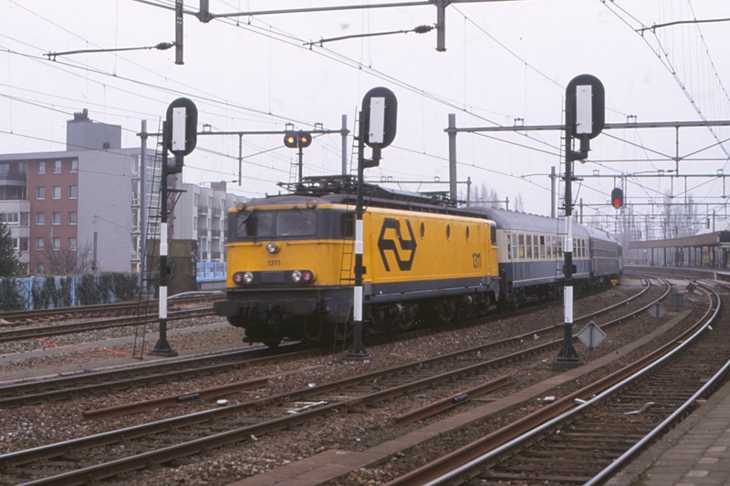 WEESP - Op 19 juni 1953 botste de 1303 (met internationale rijtuigen) bij Weesp achterop een stoptrein, welke bestond uit twee treinstellen van het type mat '46. Tijdens het ongeluk, dat zich in dichte mist voltrok, kwamen 2 mensen om het leven en raakten er vele personen gewond. De 1303 werd niet meer hersteld en afgevoerd naar de sloop. De nog bruikbare onderdelen werden van de loc gehaald en gebruikt voor de 1311, die als zijn vervanger naar Nederland kwam. |