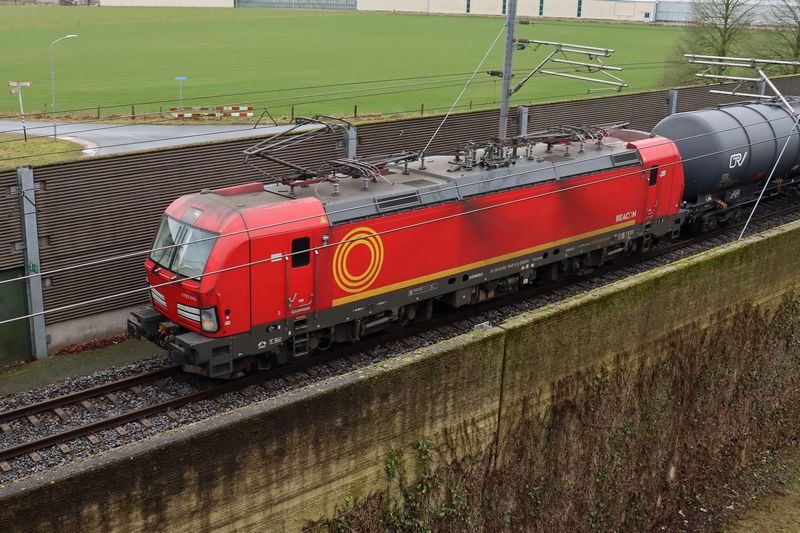 De Ecco Rail 6193 042 rijdt met een keteltrein over de BetuweRoute ter hoogte van Groessen richting Duitsland. 11 februari 2025. © TreinenInNederland.nl |