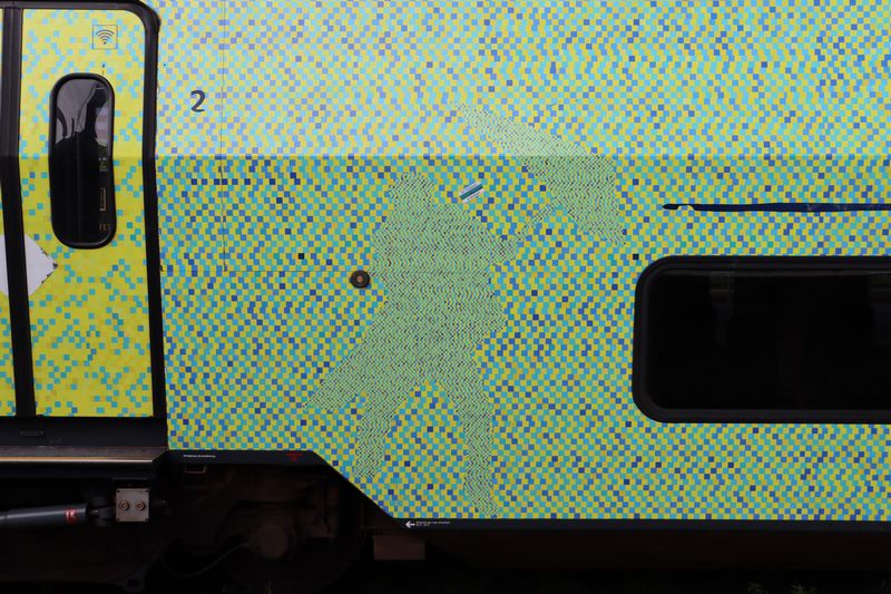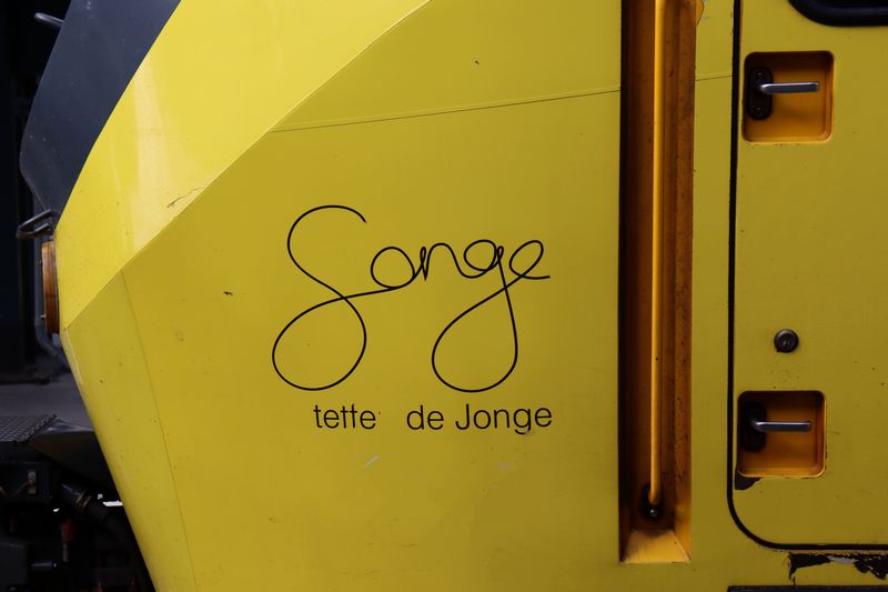De naam en handtekening van één van de twee ontwerpers van het uitfit van de trein: Steffen de Jonge. |