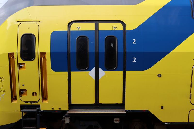 De onderkant van de trappen binnen in de trein. |