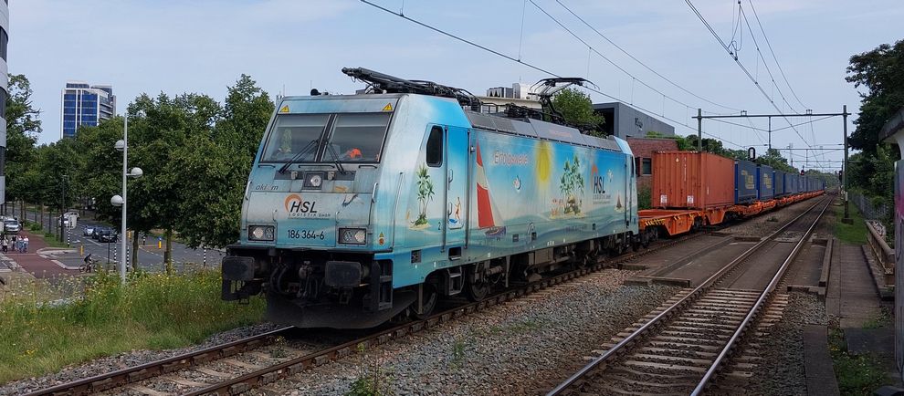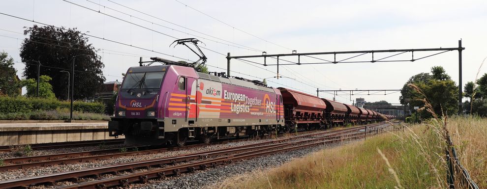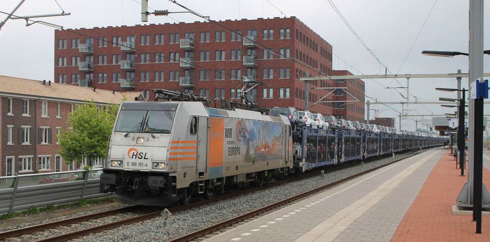 Vijf Euro9000 locomotieven HSL beschikt sinds ongeveer een jaar over 5 Euro9000 locomotieven. In het begin reden ze vooral met siekerbieten die HSL rijdt vanaf Zwitserland naar Noord Duitsland. Dat waren vooral campagnes, maar die zijn nu weer over. Ze worden nu vooral ingezet tussen Nederland / België richting het zuiden. Schallach: "De locomotieven hebben nog wel kinderziektes, maar dat hoort erbij. Het zijn prachtige locs. Ze rijden eigenlijk het gehele traject elektrisch en voor de last mile (waar vaak geen bovenleiding hangt) kunnen ze overschakelen op diesel. Dit heeft wel de toekomst." |