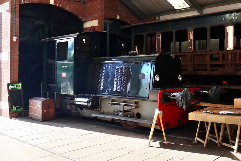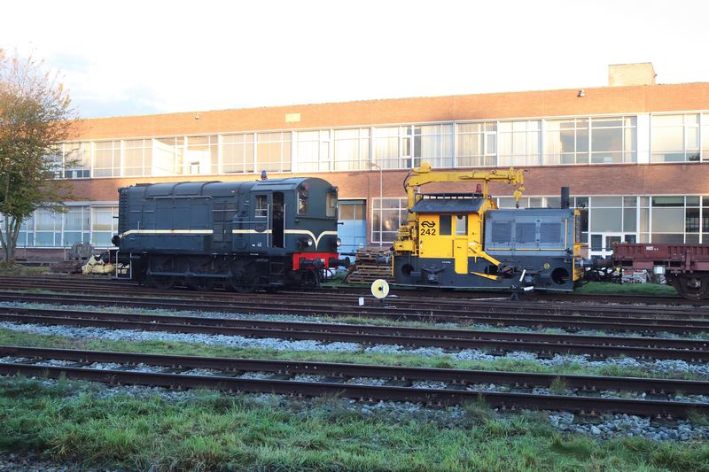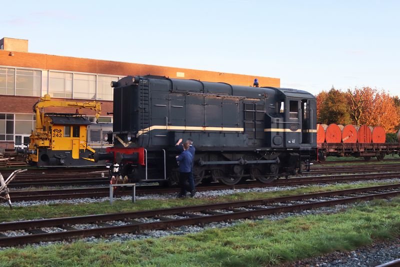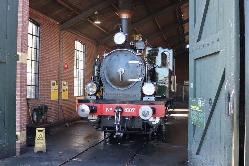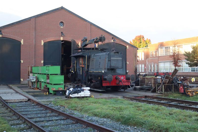 De NS 8107 staat in de werkplaats om klaar gemaakt te worden voor inzet op de zondag. |