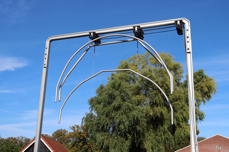 In Boekelo is een ladingmal te zien. Hiermee kan worden gemeten of de beladen van open goederenwagons niet te veel uitsteekt. |