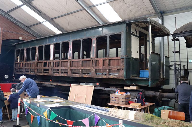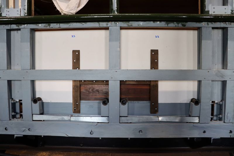 De vrijwilligers van de MBS zijn druk bezig met de restauratie van de NS C1820 uit 1901. |
