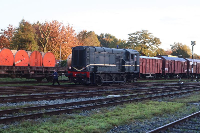 Aan het begin van de dag wordt de NS 660 klaar gemaakt om met de goederentrein vanuit Haaksbergen een slag naar Boekelo te rijden. |