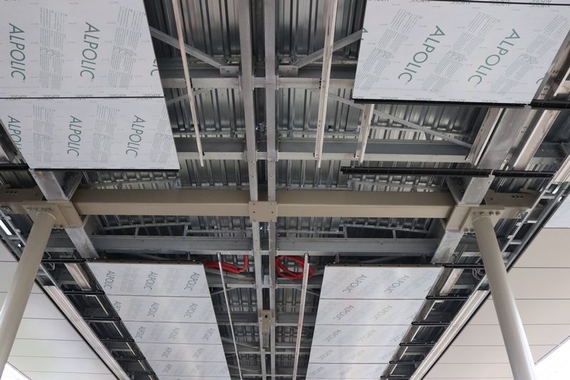 Het verschil in hoogte tussen de oude en de nieuwe overkapping. |