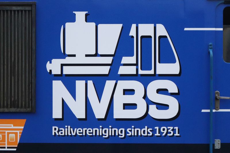 Het nieuw ontworpen logo van de NVBS staat groot op de zijkant van de locomotief. |