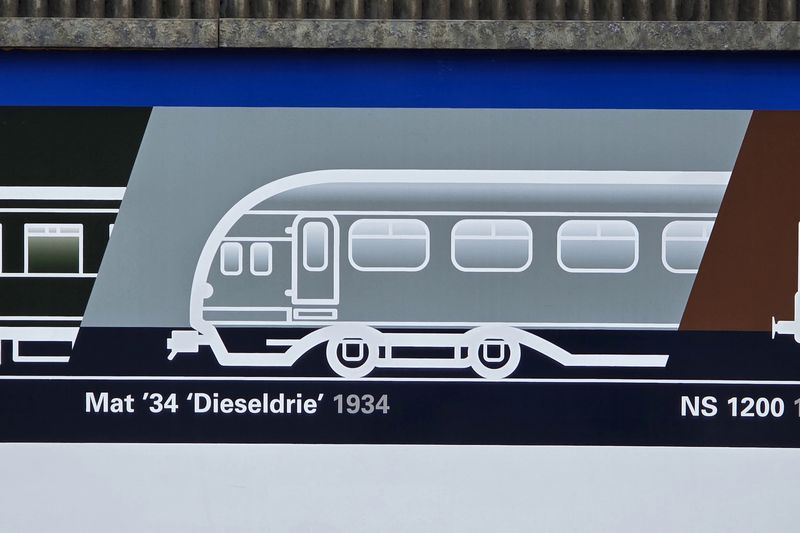 Na de Tweede Wereldoorlog herstelde de Nederlandse economie snel. Hierdoor kon Nederland, deels met het Amerikaanse Marshallplan, in de wederopbouw veel nieuw spoorwegmaterieel aanschaffen. Doordat de treinen en de infrastructuur heel ernstig waren beschadigd, werd besloten om tijdens het herstel grote stappen te maken in het moderniseren van het spoorwegnet. Grote delen van het spoor werden geëlektrificeerd en het materieelpark werd flink gemoderniseerd met de komst van veel nieuw materieel. Met de enorme modernisering wilde de Nederlandsche Spoorwegen in de jaren '50 stoomlocomotieven en houten rijtuigen buitendienst stellen. De volgende vier treinen op de tijdlijn van de NVBS 1931 werden in deze periode geleverd: de elektrische 1200, de elektrische 1300, de diesellocomotievenserie 2400 en de elektrische treinstellen Mat'54. De Nederlandsche Spoorwegen gaf in 1948 de opdracht voor de bouw van 25 elektrische locomotieven. Het ontwerp van de locomotieven is gebasseerd op locomotieven van de treinenfabriek Baldwin Locomotive Works uit Philadelphia en de elektrische installatie werd door Westinghouse Electric Company in New York ontworpen. Het opvallendste aan het ontwerp van de locomotieven is de erg grote botsneus die de machinist bij ongelukken beschermde. De grote neus werd door ontwerper Raymond Loewy bij de Baldwin Locomotive Works vaak toegepast op Amerikaanse locomotieven. De eerste helft van de locomotieven, de 1201 t/m 1214, werden net als de andere nieuwe elektrische locomotieven en rijtuigen in het turkoois geleverd. De andere 1200'en werden, net als de diesellocomotieven van de series 2200 en 2400, geleverd in een bruine kleur. Er zijn gelukkig meerdere iconische 1200'en bewaard. Op 12 november 2011 organiseerde de NVBS zelfs een grote 1200-dag. Er is één locomotief bewaard in de bruine huisstijl, zoals op de NVBS 1931 te zien is. En dat is de 1218, deze locomotief is te zien bij de Stoomtrein Goes - Borsele. |