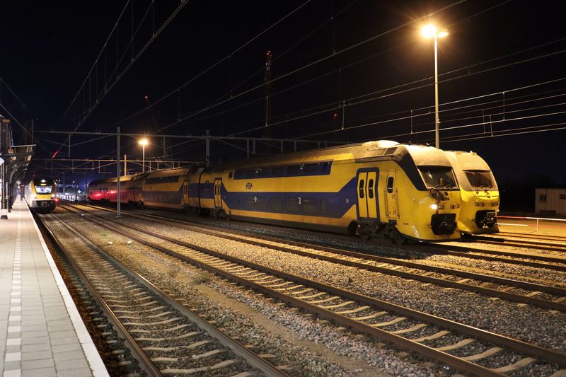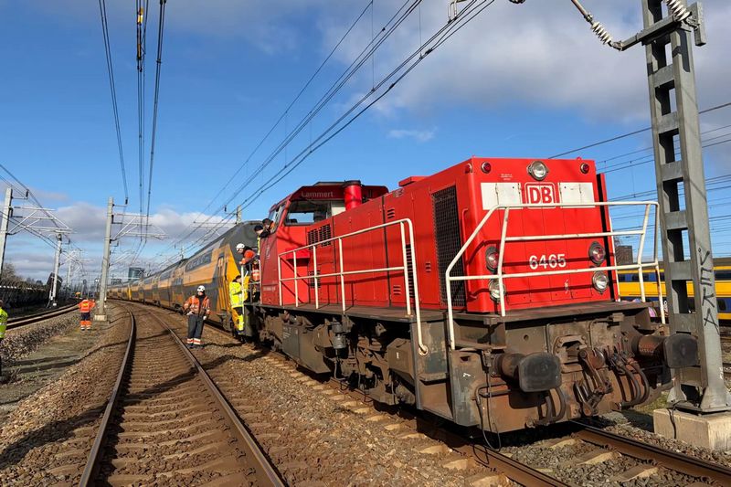 Diesellocomotief DB-loc 6465 is voor de stilgevallen VIRM's 9480 en 9573 gerangeerd. © ProRail |