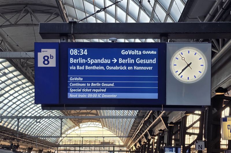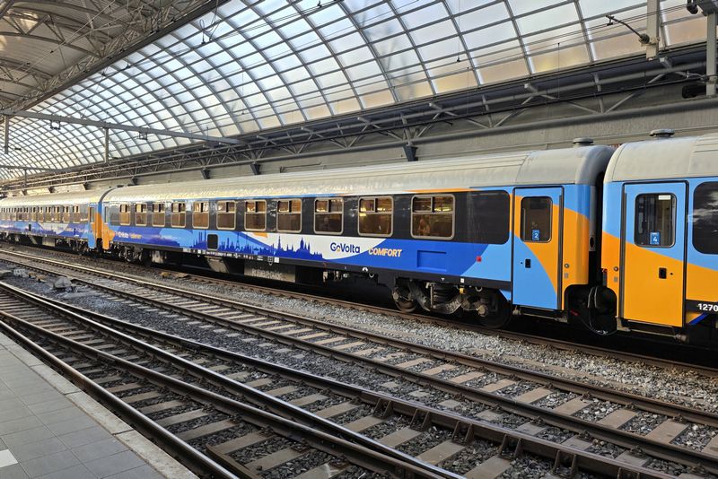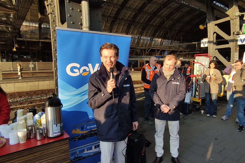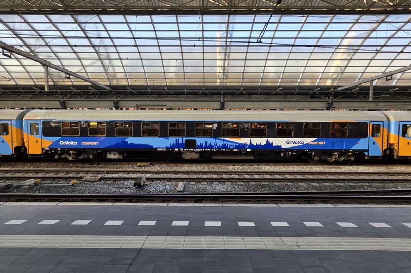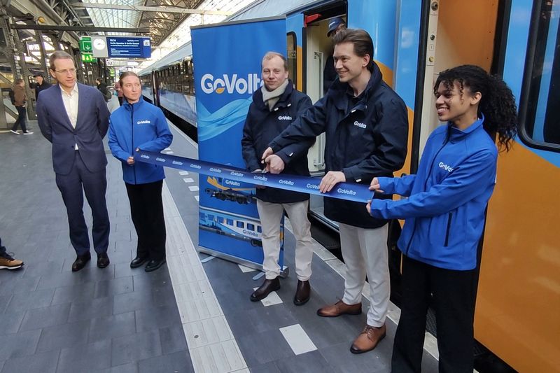 AMSTERDAM - Na jaren van voorbereiding reed op 19 maart 2026 de eerste internationale reizigerstrein van GoVolta. De Train Charter Services 101001 reed de fraai bestickerde trein, bestaande uit twee comfort-rijtuigen en zes economy-rijtuigen, vanuit Amsterdam Centraal naar Bad Bentheim. Deze eerste trein heeft de bestemming Berlijn, waar de trein na een reis van 6 uur en 46 minuten aankwam. Morgen zal de eerste trein naar Hamburg rijden.