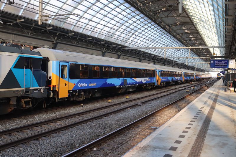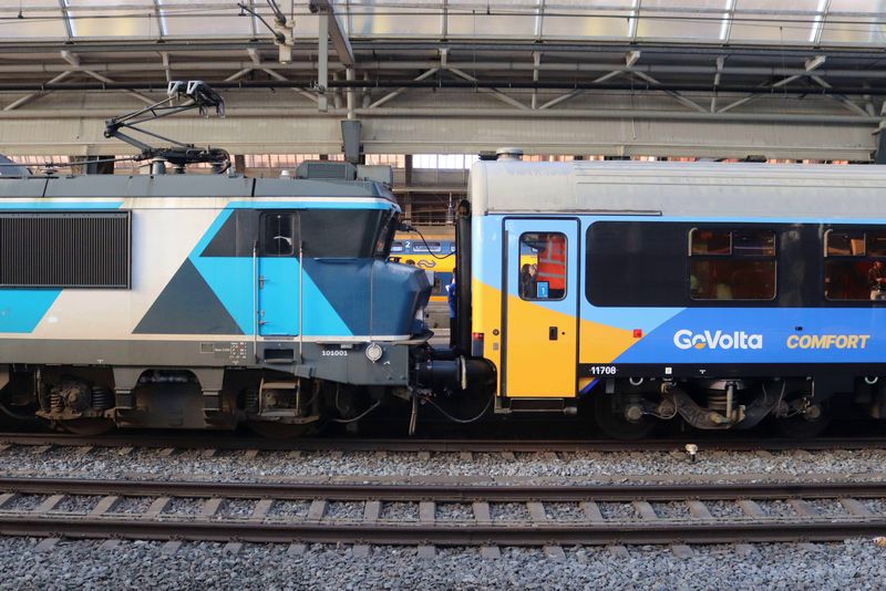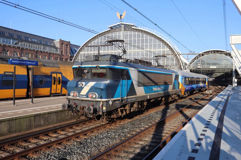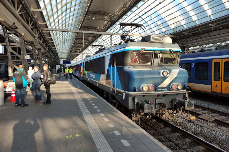 Vanaf Amsterdam Westhaven Opstel komt de TCS 101001 met de acht vers bestickerde GoVolta-rijtuigen Amsterdam Centraal binnen rijden. Doordat de bestickerde Vectrons van GoVolta nog niet gereed zijn wordt tijdelijk een 1700 van Train Charter Services ingezet.