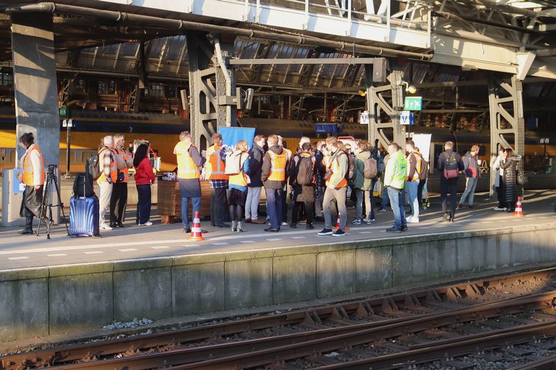 De pers en genodigden staan klaar voor de eerst trein.