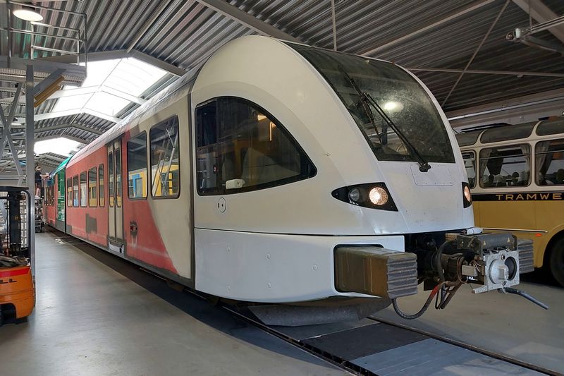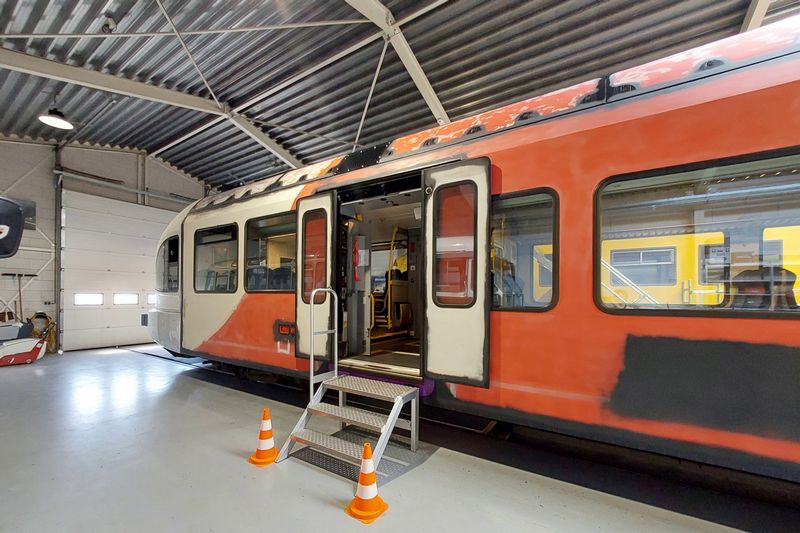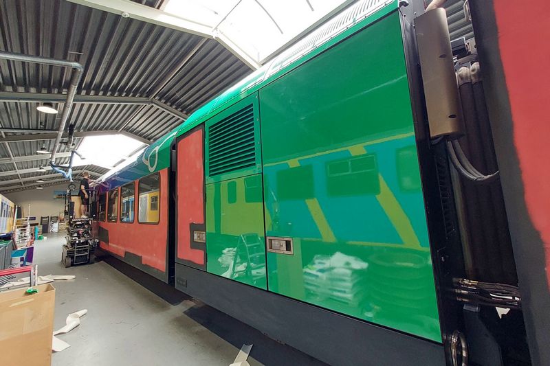 Men is druk bezig met het bestickeren van de GTW in de nieuwe RRReis-kleurstelling. |
