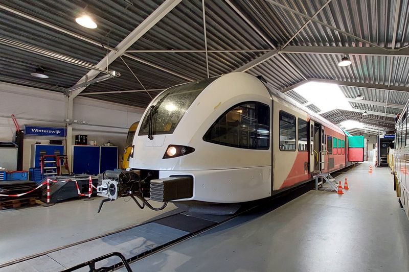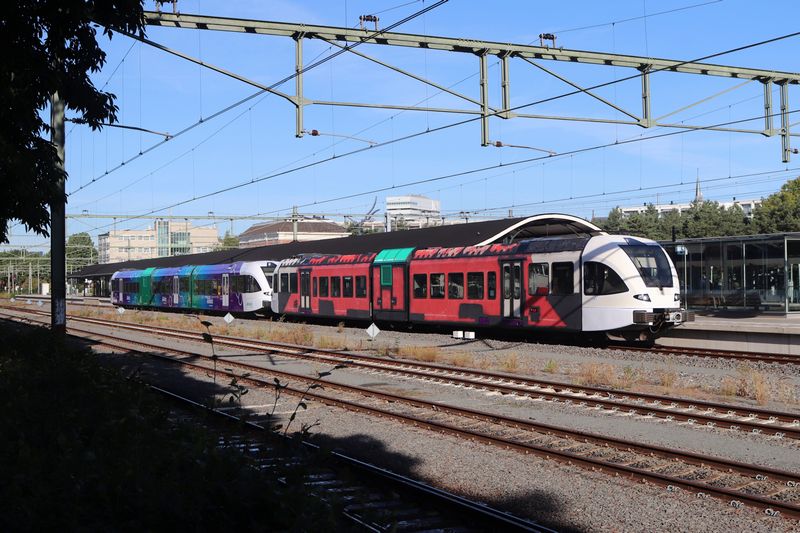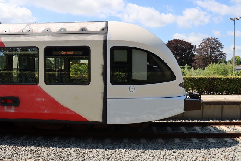 Samen met gedeputeerde Verkeer en Vervoer Tonnis Musschenga onthulde zij vervolgens de typenaam van de trein: Spurt. 'De naam Spurt staat symbool voor snelheid, sportiviteit, kracht en reizen', zo vertelde algemeen directeur Anne Hettinga van Arriva. Later bestelde Arriva nog meer Spurts voor de inzet in het noorden en andere concessies waar de vervoerder ging rijden. In 2008 leverde fabrikant Stadler acht wit-rode Spurts voor inzet in het noorden. Voor de inzet op de Merwedelingenlijn tussen Dordrecht en Geldermalsen leverde Stadler zeven elektrische GTW's aan Arriva. In 2011 kwamen hier nog eens drie Spurts bij. De laatste concessie waarvoor Arriva Spurts bestelde, was de Achterhoek-Rivierenland. Voor deze concessie kocht het bedrijf 24 diesel-Spurts van Stadler. Op 9 december 2018 verloor Arriva de concessie van de Merwedelingenlijn aan vervoerder Qbuzz. Qbuzz gaf de GTW's de rode-donkergrijze R-net-huisstijl. Tijdens deze ombouw verviel de naam Spurt die Arriva aan de treinen had gegeven. In het noorden ging in december 2021 de nieuwe concessie voor de Noordelijke Nevenlijnen in. Arriva bleef in het noorden rijden, maar moest wel haar hele vloot moderniseren. Tijdens deze modernisering kregen de GTW's tussen 2020 en 2022 een geheel turquoise-kleur en verviel de naam Spurt. De laatste concessie waar de wit-rode treinen van Arriva reden, was de Achterhoek-Rivierenland. Afgelopen december ging de nieuwe Achterhoek-Rivierenland-concessie in en moest Arriva al haar treinstellen voorzien van de nieuwe RRReis-huisstijl. Op 8 mei 2025 werd de GTW 374 als eerste treinstel voorzien van de opvallende RRReis-huisstijl. Het schuren en de corrosiebehandeling van de treinstellen vond in Amersfoort plaats en in Winterswijk werden de treinen gestickerd. Recent is het stickeren ook naar Amersfoort verplaatst, waardoor het uiterlijk van de treinstellen geheel in drie weken in Amersfoort wordt veranderd. Op 21 maart 2026 vertrok de rode 368 om 13:07 uit Apeldoorn naar Zutphen. In Zutphen werd de trein afgerangeerd en daarmee werd het tijdperk van de Spurt-treinen van Arriva afgesloten. Vandaag werd de 368 door de RRReis 374 naar Amersfoort gebracht, waar hij zal worden voorzien van de paars-groene-blauwe RRReis-kleuren. Hoewel de rode 368 wel de laatste Spurt in de reizigersdienst was, draagt de Arriva 371 ook nog het wit-rode Spurt-uiterlijk. Deze trein staat sinds oktober 2025 in Blerick voor de ombouw van het interieur. Dit treinstel zal eerst worden voorzien van de RRReis-bestickering en testritten rijden voordat hij de reizigersdienst in kan. Voor alle foto's geldt: © TreinenInNederland.nl |