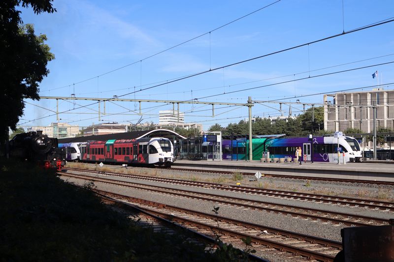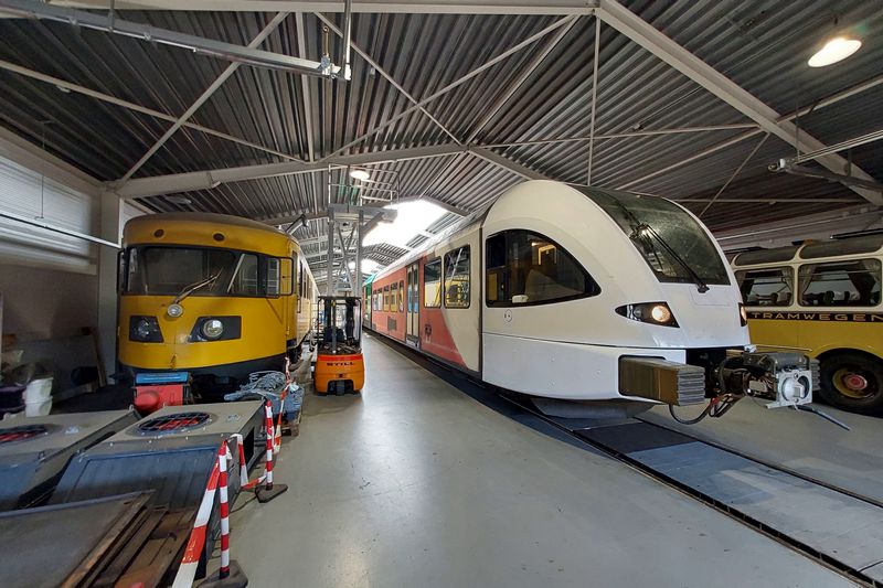 Links naast het Arriva-treinstel staat museum-treinstel 186 van Transit-Oost. |