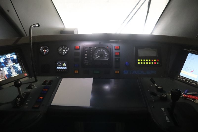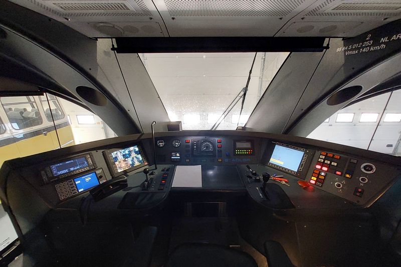 We nemen een kijkje in de cabine van de trein. |