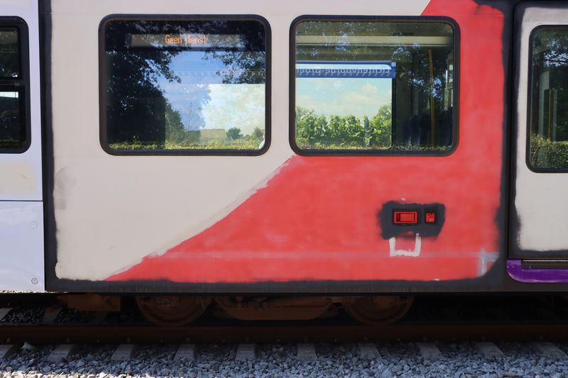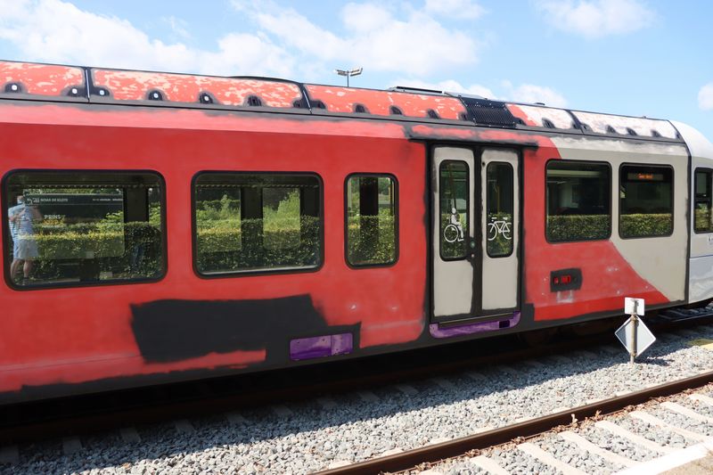 Op 8 mei 2025 werd de GTW 374 als eerste treinstel voorzien van de opvallende RRReis-huisstijl. |
