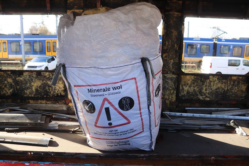 Een bigbag vol met glaswol. |