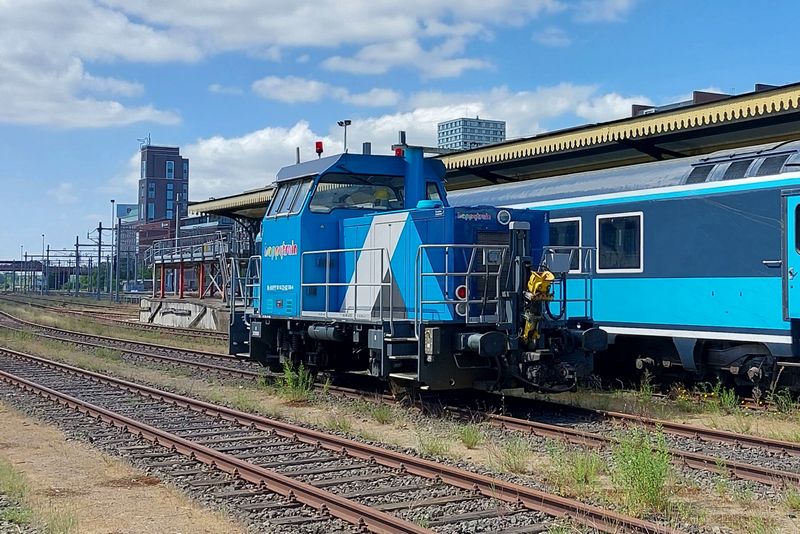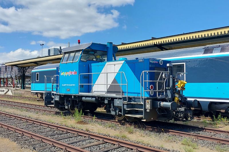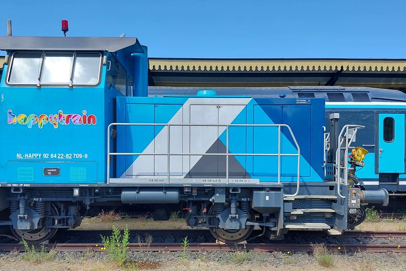 Rond de eeuwwisseling waren nog maar een handjevol locomotieven van de serie NS 500 / 600 / 700 actief bij NS. Deze locomotieven worden door NedTrain, een dochteronderneming van NS, gebruikt voor rangeerwerkzaamheden bij de NedTrain-werkplaatsen. Om deze oude locomotieven te vervangen, bestelde NS 13 rangeerlocomotieven van het type G 400 B bij Vossloh. In 2003 en 2004 werden de 701 t/m 713 geleverd. De locomotieven waren voorzien van de NedTrain-huisstijl: geel, lichtgroen en donkergroen. De nieuwe locomotieven werden over de werkplaatsen in Nederland verdeeld en vervingen de oude Hippels. In 2005 werd de laatste Hippel, de 49 jaar oude 647, die NedTrain gebruikte buitendienst gesteld. In 2017 werd NedTrain weer terug bij NS gevoegd en kreeg het de naam NS Onderhoud & Service. De groene NedTrain-huisstijl werd bij alle 13 rangeerlocomotieven in 2017 en 2018 vervangen voor de geel-blauwe NS kleuren. Eind 2020 had NS door een overschot aan rangeerlocomotieven drie locs te koop aangeboden. De 712 werd aan Brouwer Technology verkocht en de 704 en 706 werden overgenomen door Strukton. In juni 2023 verkocht nog een rangeerlocomotief van het type G 400 B. De 709 werd overgenomen door Train Charter Services. Op 19 juni werd de geel-blauwe 709 door de TCS 102001 vanuit Hengelo overgebracht naar de SSN in Rotterdam. Daar werd de NS 709 omgestickerd naar de TCS 111001. De locomotief kreeg ook de blauwe TCS huisstijl. Op 28 juni werd de 111001 door de 102001 opgehaald uit Rotterdam en naar de Watergraafsmeer in Amsterdam gebracht. De 111001 wordt voornamelijk gebruikt voor rangeerwerkzaamheden in Amsterdam. Daarnaast wordt de locomotief ook in andere plekken in Nederland gebruikt als TCS daar de locomotief nodig heeft. Tussen 11 en 15 december 2024 verplaatste TCS al haar materieel wat op de Watergraafsmeer stond naar de Bokkeduinen in Amersfoort. Hiermee werd Amersfoort ook de nieuwe standplaats van de 111001. Begin juli 2024, vlak voordat de DinnerTrain stopte met rijden, werd één WRmz 134.5-restauratierijtuig voorzien van nieuwe logo's. De witte Train Charter-logo's werden vervangen door regenbooglettters van HappyTrain. Sinds het faillietgaan van Train Charter Events (met een schuld van zeker 1,2 miljoen euro) is Train Charter Services druk bezig met nieuw materieel kopen, een deel van het huidige materieel reviseren en de nieuwe Happy Train-logo's op het materieel te plakken. Sinds begin maart 2025 is HappyTrain ook de voertuighouder geworden van al het materieel van TCS in Nederland. Bij de UIC-nummers van het materieel is TCS vervangen door HAPPY. Enkel de Duitse BR101-locomotieven hebben nog TCS als voertuighouder. In de loop van 2025 werden alle Train Charter-logo's verwijderd en voor een deel vervangen door nieuwe HappyTrain-logo's. HappyTrain is opgericht in 2016 en haar naam stond al in het klein op het materieel van IRP en TCS. Momenteel rijdt de locomotief voor HappyTrain onder nummer 111001. UIC-nummer: 92 84 228 2709-9 |