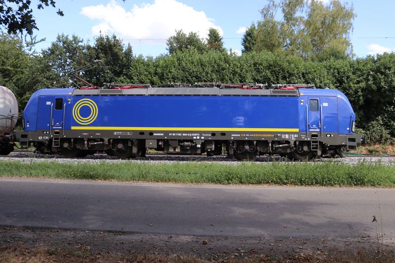 De Ecco Rail 7193 804 rijdt met een keteltrein door Elten (D) richting Emmerich. 29 augustus 2025. © TreinenInNederland.nl |
