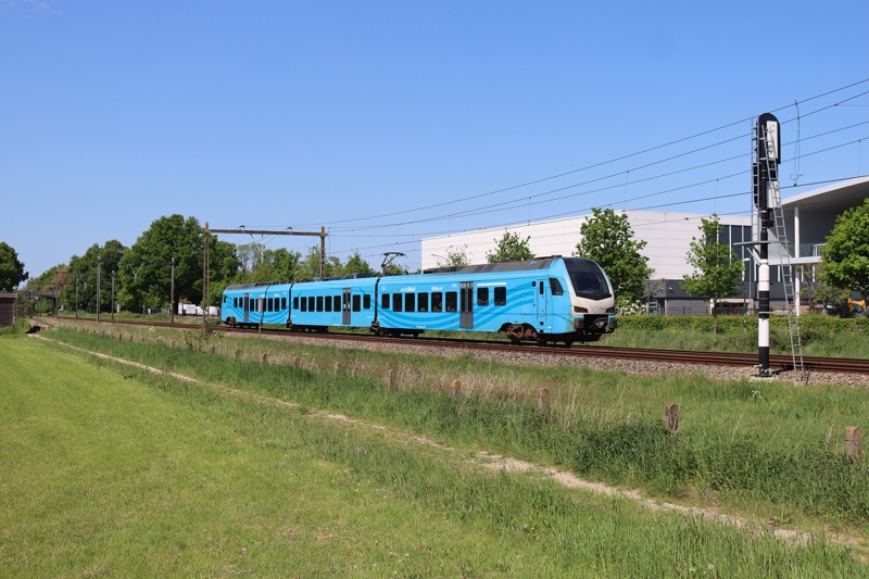 De Keolis 5039 rijdt ter hoogte van de Esweg in Barneveld richting station Barneveld Centrum. 3 mei 2025. © TreinenInNederland.nl |