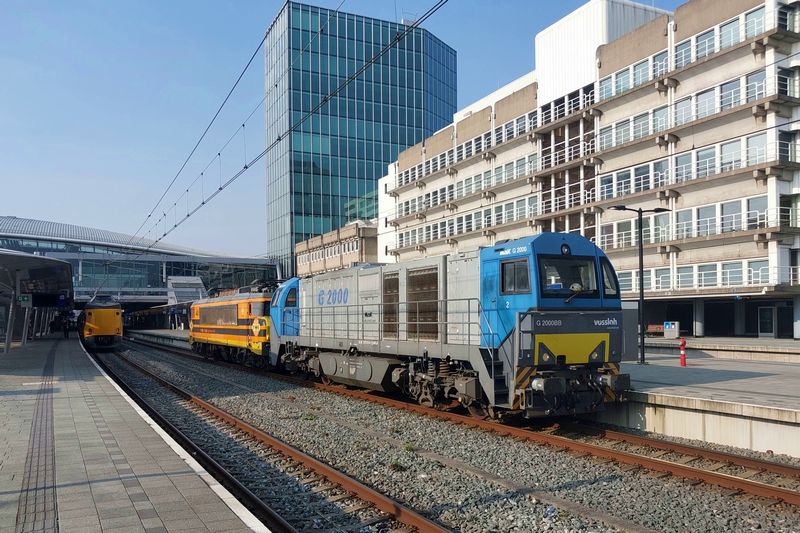 De RRF 1042 rijdt met de 4401 in opzending door Utrecht Centraal naar Arnhem en Zutphen. 24 maart 2025. © TreinenInNederland.nl |