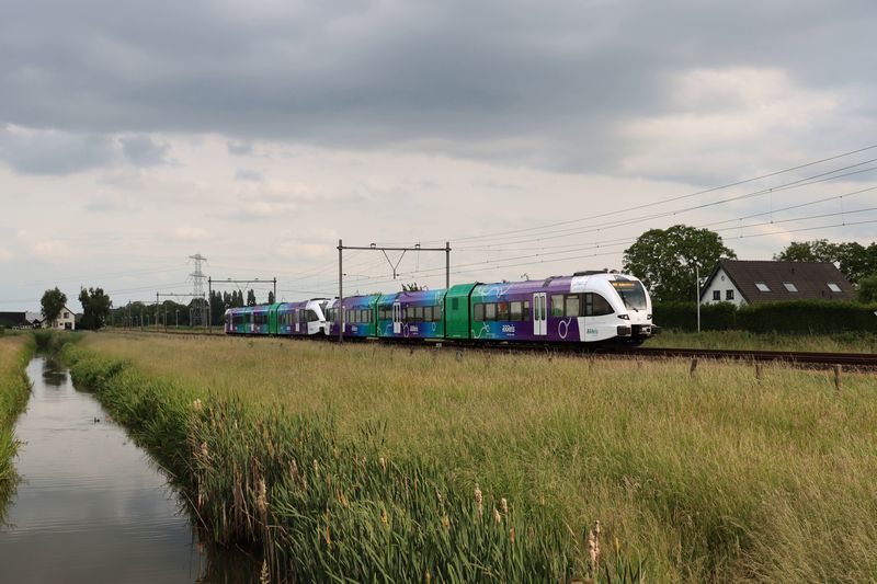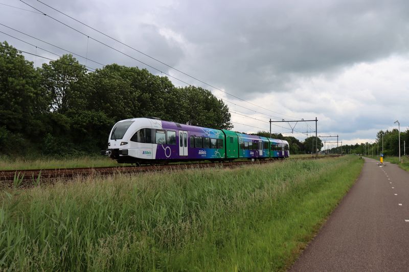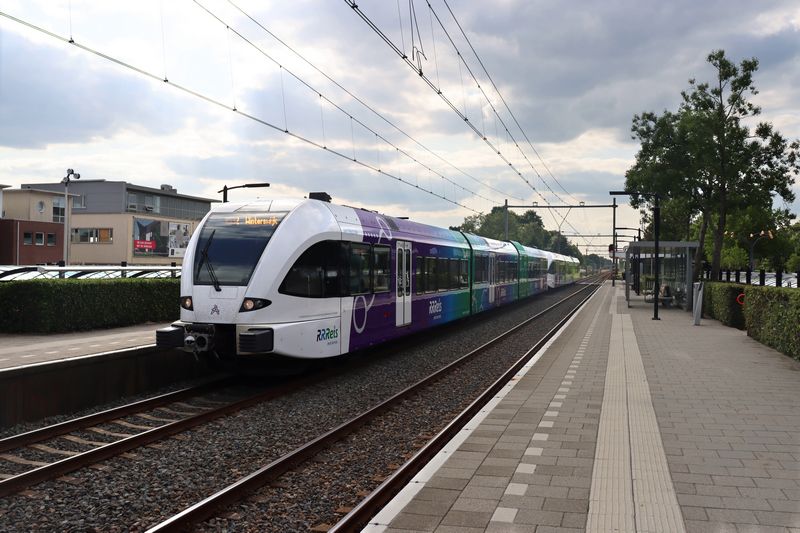 De 372 en 374 rijden door Zevenaar richting Winterswijk. Dit was de eerste rit dat er twee RRReis-treinstellen aan elkaar gecombineerd reden. 4 juni 2025. © TreinenInNederland.nl |