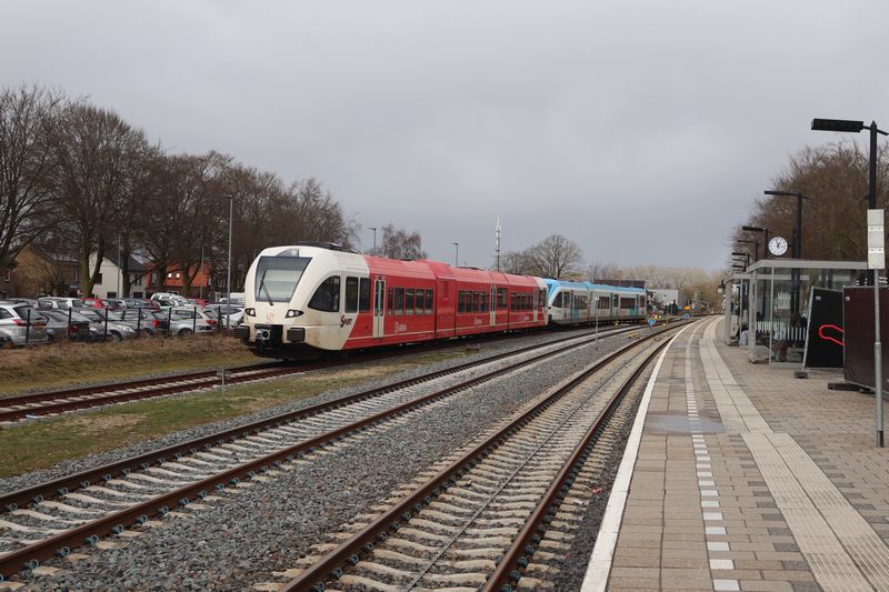 Links: Arriva GTW 369 en de 394 naast een onbekend GTW op het station van Didam. 10 januari 2026. © TreinenInNederland.nl |