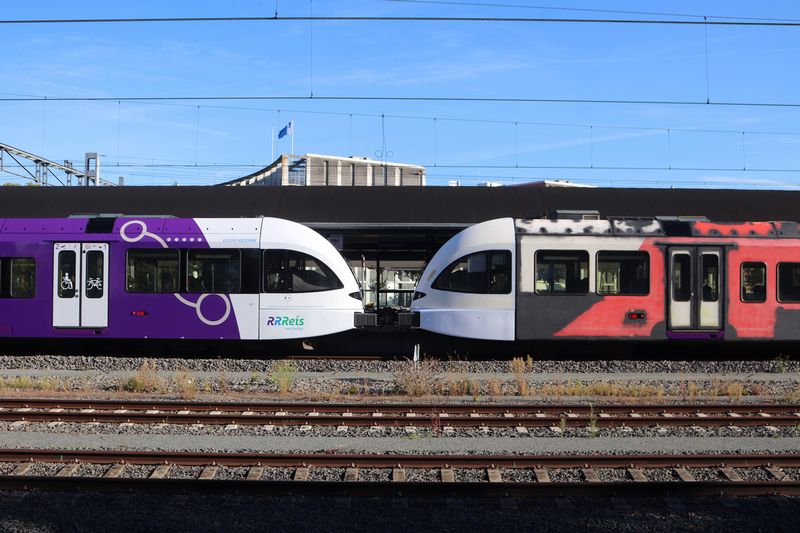 De neuzen van de rode 373 en ex-Breng 394 in Cuijk. 17 februari 2026. © TreinenInNederland.nl |