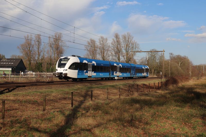 De Blauwnet 314 rijdt tussen Oldenzaal en Hengelo Oost naar Zutphen. 27 februari 2026. © TreinenInNederland.nl |