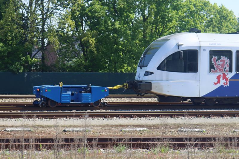 Een rangeerrobot staat met de Arriva 532 staat in Blerick opgesteld. 29 april 2025. © TreinenInNederland.nl |