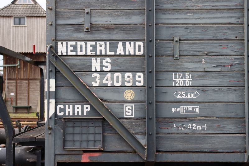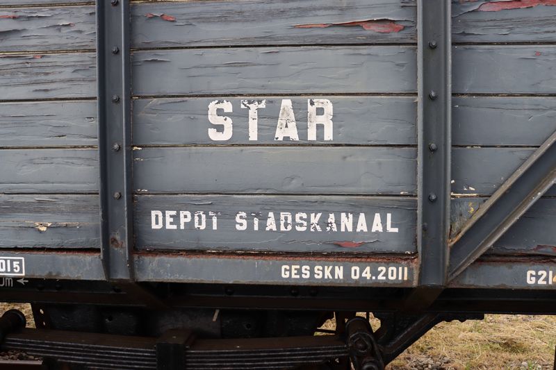 De NS 34099 en een aantal andere goederenwagons van de STAR staan opgesteld. Nationale Stoomtreindag 2025 bij de Museumspoorlijn STAR, 29 mei 2025. © TreinenInNederland.nl |