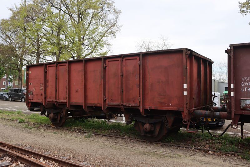 Na de Tweede Wereldoorlog herstelde de Nederlandse economie snel. Hierdoor kon Nederland, deels met het Amerikaanse Marshallplan, in de wederopbouw veel nieuw spoorwegmaterieel aanschaffen. Doordat de treinen en de infrastructuur heel ernstig waren beschadigd, werd besloten om tijdens het herstel grote stappen te maken in het moderniseren van het spoorwegnet. Grote delen van het spoor werden geëlektrificeerd en het materieelpark werd flink gemoderniseerd met de komst van veel nieuw materieel. Met de enorme modernisering wilde de Nederlandsche Spoorwegen in de jaren '50 stoomlocomotieven en houten rijtuigen buitendienst stellen. Een stoomlocomotief moet uren van tevoren al worden opgestookt voordat de machine kan worden ingezet. Naast kolen en water kost dit ook veel loon voor het personeel; op stoomlocomotieven moet namelijk ook een stoker aanwezig zijn. Houten rijtuigen zijn bij aanrijdingen onveiliger, omdat het hout veel minder sterk is, waardoor de rijtuigen volledig kunnen versplinteren. Tevens wilde NS het, meestal slecht presterende, materieel dat na de oorlog uit legerdumps en elders uit Europa werd gekocht of gehuurd snel vervangen. In de jaren na de oorlog bestelde NS, tot en met 1959, 173 dieselrangeerlocomotieven (de series 200, 450, 500, 600 en 700), 286 diesellocomotieven voor op de hoofdbaan (de series 2200, 2400 en 2600, de 2600'en werden in 1958 al aan de kant gezet), 100 elektrische locomotieven (de series 1100, 1200 en 1300), 311 rijtuigen (de series Plan-D, Plan-E, Plan-K en Plan-N), 48 postrijtuigen (de series Pec, Plan-C, Plan-E en Plan-L), twee fietsrijtuigen (Dec-rijtuigen, de rijtuigen werden na één jaar omgebouwd naar Pec-postrijtuigen), 297 elektrische treinstellen (de series Mat'46, Mat'54 en Mat'57), 81 dieseltreinstellen (de series Plan-X en TEE DE4) en meer dan tien duizend nieuwe goederenwagons. Door al het nieuwe materieel en het sluiten van tramlijnen nam NS in 1955 afscheid van de laatste stoomtram. Op 31 augustus 1955 reed de NS 7742 'Bello' als laatste NS-stoomtram van Bergen aan Zee naar Alkmaar. Een jaar later nam NS op 16 juni 1956 afscheid van de laatste houten rijtuigen. Op 7 januari 1958 reed de NS 3737 als laatste stoomtrein, in dienst van de Nederlandsche Spoorwegen, van Geldermalsen naar het Spoorwegmuseum in Utrecht. Nederland was een van de eerste landen in Europa waar stoomlocomotieven en houten rijtuigen niet meer op het hoofdnet gebruikt werden. Op de grensbaanvakken met Duitsland waren echter tot in de jaren '70 nog Duitse stoomlocomotieven te zien. Bij Nederlandse industrieën rangeerden stoomlocomotieven nog veel langer door. In 1975 werden de LV 13 en LV 14 (de oude NS 8811 en 8826) als laatste stoomlocomotieven in commerciële dienst in Nederland terzijde gesteld na het sluiten van de laatste steenkolenmijnen in Zuid-Limburg een jaar eerder. In de jaren '50 besloot NS om duizenden nieuwe opengoederenwagons te bestellen. Er werd gekozen voor een Europees standaardtype goederenwagons. Tussen 1954 en 1959 werden 2600 bruine goederenwagons van de serie gebouwd. De wagons kregen de typeaanduidingen GTO en GTOW. De wagons lijken veel op de oudere serie stalen opengoederenwagons, waarvan de GTUW NS 65248 is bewaard. De nieuwe wagons hadden een draagvermogen van 28 ton, in tegenstelling tot het draagvermogen van 20 ton van de oudere wagons. De GTO en GTOW werden voor vele soorten goederenvervoer gebruikt. Bekende inzetten van de wagons zijn in het bieten- en kolenvervoer. Begin jaren '80 werden de typeaanduidingen GTO en GTOW van de wagons vervangen door E. Door de sterke opkomst van de vrachtwagens in de jaren '60 liep het goederenvervoer per spoor terug en sloten veel los- en laadplaatsen. Ook werd sinds de ontdekking van het aardgasveld onder Groningen in 1959 steenkool steeds minder gebruikt, waardoor het aantal kolentreinen sterk terugliep. Hierdoor werd een deel van de opengoederenwagons overbodig en terzijde gesteld. De laatste goederenwagons van de serie werden in de jaren '90 terzijde gesteld. |